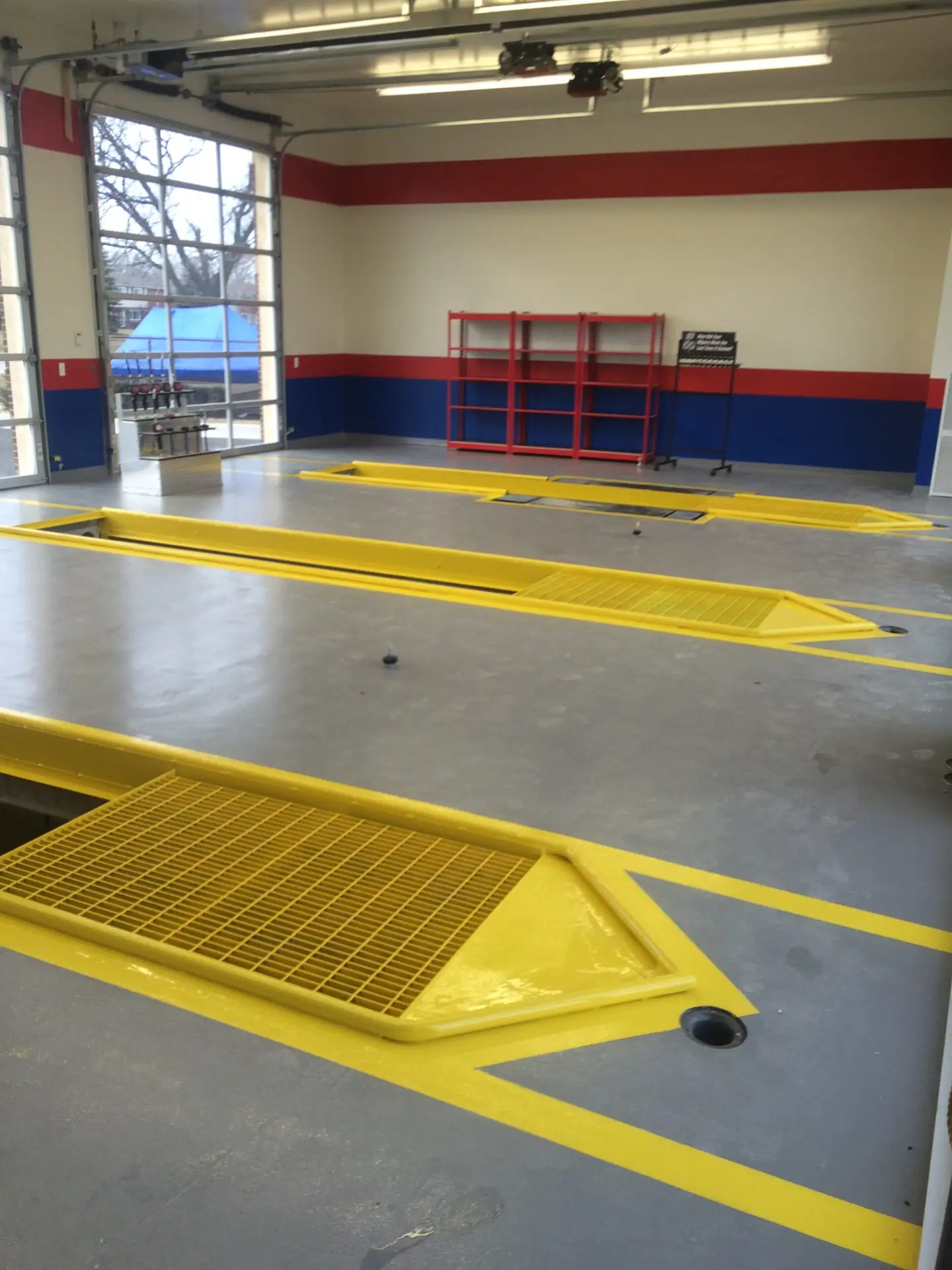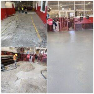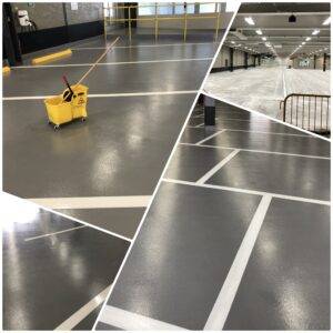 Automotive facilities require flooring that handles oil, brake fluid, tire marks, and heavy equipment traffic.